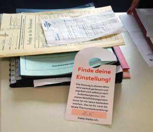Deshalb hat das Projekt die aus Hotels bekannten Türhänger bedrucken lassen, die man an die Heizung oder an eine andere Stelle im Büro hängen kann. Auf ihnen soll jeder Mitarbeiter die für ihn optimale Thermostateinstellung vermerken und nach Möglichkeit beibehalten. Ob es funktioniert und die Büromitarbeiter die „richtige Einstellung“ finden und beibehalten, wird von stratum® überprüft. Informiert wurden die Mitarbeiter bereits auf einer eigens zum Energiethema einberufenen Betriebsversammlung.