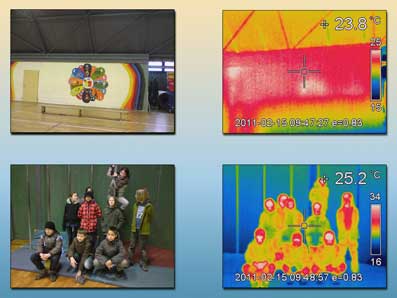 Da in der Abteilung für Jugend und Immobilien eine Wärmebildkamera vorhanden war und durch Vermittlung des dort zuständigen Mitarbeiters, Jürgen Bornschein, auch Mitarbeiter aus einem ABM-Projekt bei W.E.N. Consulting für die Bedienung des Geräts und die Auswertung der Aufnahmen zur Verfügung standen, konnte es in der kalten Periode des Februar 2011 losgehen. An insgesamt 5 Objekten fanden Wärmebildaufnahmen und -auswertungen zusammen mit Schülerinnen und Schülern statt: