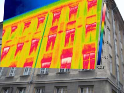Um Energieverluste an Gebäuden sichtbar zu machen, nutzt man die Thermografie. Wärmebildkameras können die für den Menschen unsichtbare Infrarotstrahlung abbilden. Fast jeder dürfte solche Aufnahmen von Häusern bereits gesehen haben. Im Projekt „Köpfchen statt Kohle“ schlug stratum® vor, dieses Instrument für zwei Ziele zu nutzen: Erstens, um tatsächliche Wärmelecks und Schwachstellen in den öffentlichen Gebäuden aufzuspüren und in Schülerprojekte nach Möglichkeiten für Verbesserungsmaßnahmen zu suchen. Und zweitens, um das Thema „Energieeffizienz“ auch visualisierbar zu machen. Denn die Fotos, die bei der Thermografie entstehen, sind eindrucksvoll und immer ein Hingucker. Im Verlauf der Wärmebildprojekte an 5 Objekten stellte sich heraus, dass auch ein echter Lerneffekt damit verbunden ist, denn die Schülerinnen und Schüler mussten, um das Prinzip und die Aufnahmen zu verstehen, auch etwas über die verschiedenen Formen der Wärmeausbreitung lernen.