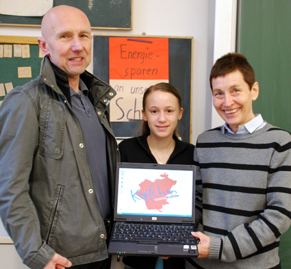 stratum es bei der Veolia Stiftung. Dank des Einsatzes von Stiftungsgeschäftsführerin Sylke Freudenthal konnte die Umweltgruppe auf unbürokratischem Weg jetzt rechtzeitig ein Notebook erhalten. Auf unserem Foto oben freuen sich (v.l.n.r.) Umweltgruppenleiterin Ingrid Temme, die Schülerin Gabriela Bertin und „Köpfchen statt Kohle“-Projektleiter Richard Häusler über die Hilfe durch Veolia. Am Tag zuvor hatte Sylke Freudenthal die Lieferung in der Stiftungszentrale an „Köpfchen statt Kohle“ übergeben (Foto rechts).