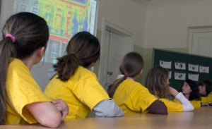 Die Umweltgruppe der Schule am Falkplatz ist die erste, die jetzt eine Energiekonferenz abgehalten hat. In der letzten Stunde vor den Osterferien versammelten sich einige interessierte Eltern, mehrere Lehrkräfte und die Mitarbeiterinnen der Lernwerkstatt, um zusammen mit Experten die energetische Situation der Schule zu klären und Verbesserungsmöglichkeiten aufzuzeigen. Zu den Experten dürfen sich auch die 10 Mitglieder der Umweltgruppe mittlerweile zählen. Denn die Schülerinnen und Schüler der 5. und 6. Klassen haben sich durch Messungen und Untersuchungen ein mit Fakten und Zahlen belegbares Bild der Situation an ihrer Schule erarbeitet und können die Ergebnisse auch professionell präsentieren. Mit Unterstützung durch „Köpfchen statt Kohle“ messen sie im Winterhalbjahr in allen Klassenräumen die Temperatur mit Infrarot-Thermometern und werten die Daten am Computer aus. Im Februar haben sie auch mit einer Wärmebildkamera eine komplette thermografische Aufnahme des Schulgebäudes gemacht. Die eindrucksvollen bunten Wärmebilder der Schulhausfassade wurden in der Energiekonferenz als Ausstellung präsentiert.