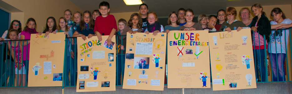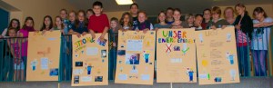 Grundschule am Wasserturm (unser Foto zeigt die letztjährige 5. Klasse von Petra Roscher mit den Ergebnis-Postern ihrer Energieprojekte): Von einer 5. Klasse werden im November Wärmebildaufnahmen der Schule gemacht und ausgewertet. Es soll auch eine Ausstellungspräsentation entstehen.