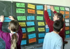 - Um von den Vorstellungen auszugehen, die in den Köpfen der Schüler zum Energiebegriff bestehen, konnten die Schüler mit selbstklebenden Moderationskarten die ganze Schultafel mit ihren Assoziationen zum Begriff