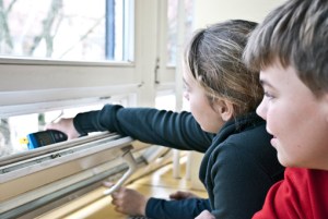 Die Kinder der 5b in der Grundschule unter den Bäumen sind geborene Problemlöser. Im Projektunterricht wurden die Temperaturverläufe im Klassenzimmer diskutiert, die die Fünftklässler mit verschiedenen Arten von digitalen Thermometern gemessen hatten. Natürlich kam dabei auch die Frage auf, welche Lüftungsmethoden am besten geeignet sind, um im Winterhalbjahr die verbrauchte Luft im Klassenzimmer auszutauschen.