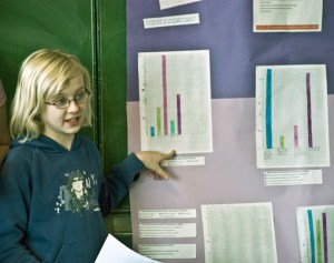 Zu den spektakulären Ergebnissen der Projektgruppen gehört sicher die Empfehlung des Teams, das sich mit der Thermostateinstellung beschäftigt hat. „Eine dauerhafte Einstellung auf Stufe ‚1‘ müsste während der Heizperiode eigentlich ausreichend sein“, verkündeten die Fünftklässler. Voraussetzung dafür dürfte allerdings ein konsequentes und vor allem richtig dosiertes Lüften in den Klassenräumen sein. Bis jetzt geht die große Mehrheit aller Schüler und Lehrkräfte an der Schule davon aus, dass es normal und sinnvoll sei, zu hohe Temperaturen in den Klassen durch geöffnete Fenster zu regulieren. „Das Öffnen der Fenster hat nur den Sinn, die notwendige Luftqualität wieder herzustellen, es soll aber nicht der Temperaturregelung dienen“, verlautet dazu die Projektgruppe, die sich mit dem CO2-Gehalt der Atemluft im Klassenzimmer beschäftigt hat. Diese Gruppe hat auch herausgefunden, dass das beliebte Dauerlüften im Winter mit gekippten Oberlichtern gar nicht zu guter Luft führt, sondern nur Energieverschwendung ist.