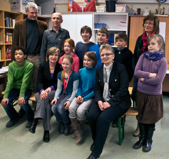 Der Klassenraum war schon gerammelt voll, als Christine Keil (Bild li.) und Lioba Zürn-Kasztantowicz (Bild re.) wieder mal in einer Schulbank Platz nahmen. Die beiden Bezirksstadträtinnen leiten die Abteilungen der Pankower Stadtverwaltung, die im Projekt „Köpfchen statt Kohle“ zusammenarbeiten – das Bau- und das Schulressort. Eingeladen hatten sie die Fünft- und Sechstklässler der Grundschule am Kollwitzplatz, die seit fünf Monaten im Auftrag des Bezirks in ihrer Schule nach Energielecks suchen. „Wo kann man Energiekosten sparen und dadurch auch etwas gegen den Klimawandel tun“ war die Frage, auf die die Veranstaltung den beiden Politikerinnen Antworten geben wollte.