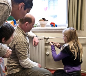 Weil Hausmeister Jens Beckmann vom letzten „Köpfchen statt Kohle“-Hausmeister-Workshop so motiviert in seine Schule zurückkam, nahm die Umweltgruppe der Schule am Falkplatz die Gelegenheit beim Schopf und ernannte Jens Beckmann zum ständigen Mitglied. Denn mit seiner Hilfe, so dachten die Fünft- und Sechstklässler, müsste man dem Problem der vielen „unregelbaren“ Räume auf die Schliche kommen. Denn nicht wenige Klassenzimmer am Falkplatz scheinen auf die zentrale Heizungssteuerung nicht zu reagieren. Zum Beispiel Raum 007: Schon vor Unterrichtsbeginn messen die Schüler hier Temperaturen von über 25 Grad Celsius. Die Luft ist entsprechend stickig. Alle Heizkörper sind sehr warm, die gemessene Vorlauftemperatur in den Rohren ist bei fast 50 Grad. Am Steuerungscomputer der Heizungsanlage hatten die Schüler jedoch selbst als Temperaturobergrenze 20 Grad eingegeben. Was war los? Der Steuerungscomputer zeigt auch, welche Raumtemperatur vom Temperaturfühler in dem Klassenraum übermittelt wird. Die Schüler prüften zuerst dies nach – tatsächlich meldete auch der Computer aktuelle 25,4 Grad. Also konnte der Temperaturfühler nicht defekt sein. Aber der Computer zeigte auch an, dass alle Heizkörperventile geschlossen seien. Dann müssten aber auch die Heizkörper in dem Raum kalt sein! Der Verdacht fiel also auf die Thermostatventile an den Heizkörpern. Jens Beckmann holte die Rohrzange und zeigte den Schülern der Umweltgruppe, wie man das Ventil abschraubt. Dabei legten auch die Mädchen der Gruppe Hand an (unser Foto). Nach den Osterferien will sich Jens Beckmann einen technischen Experten ins Haus holen, um zu lernen, wie man die Funktionsfähigkeit der Ventile prüfen kann. Mit Hilfe der Umweltgruppe sollen dann bis zum Herbst alle Ventile in der Schule überprüft werden.