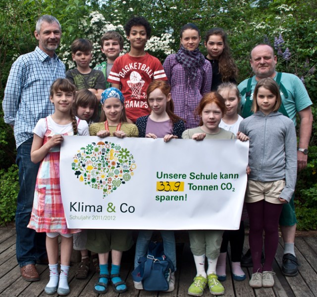 13 Preisträger gibt es beim diesjährigen Schulwettbewerb „Klima & Co“. Der Wettbewerb wird von BP gesponsert und ist Deutschlands höchstdotierter Klimaschutzwettbewerb für Schulen. Als einzige Berliner Schule hat jetzt die Grundschule am Kollwitzplatz einen Preis bei „Klima & Co“ gewonnen. Die Schule bekommt 10.000 Euro für die Umsetzung von Energiesparmaßnahmen, die Schülerinnen und Schüler der 5. Klassen im Rahmen von „Köpfchen statt Kohle“ entwickelt haben. Über 33 Tonnen CO2 können damit jährlich eingespart werden, wie die Projektgruppe auf dem Wettbewerbstransparent stolz verkündet (siehe Foto).