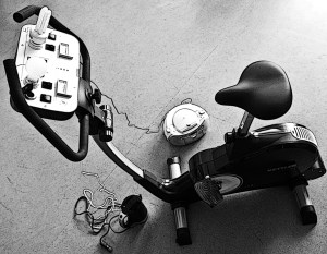 Energierad-Gruppe: Hier kommt zum ersten Mal das Energierad (Foto) zum Einsatz, das „Köpfchen statt Kohle“ für die Energieprojekte beschafft hat. Mit dem Ergometer können Schüler buchstäblich körperlich erfahren, was Energie ist. Sie betreiben durch Körpereinsatz Glühbirnen, Energiesparlampen, Radios oder Wasserkocher, analysieren die verschiedenen Leistungsdaten und lösen Aufgaben, die im Schwierigkeitsgrad zwischen den Anforderungen der 4. bis 10. Klasse variieren können. In der Projektwoche sollen die Schülerinnen und Schüler selbst überlegen, wie man das Energierad für die Motivation zum Energiesparen und für die Energiebildung einsetzen könnte.