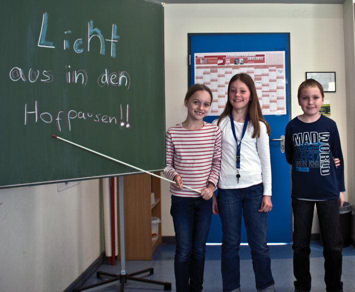 Licht-Gruppe: Schon im letzten Schuljahr hat eine Projektgruppe begonnen, sich mit den Einsparmöglichkeiten bei der Beleuchtung zu beschäftigen, und darüber ein Poster erstellt. Die Aufgabenstellung für die Projektwoche lautet: „Diskutiert anhand des vorliegenden Posters, wie ihr die Vorschläge für das Energiesparen bei der Beleuchtung umsetzen könntet. Wie könntet ihr nachweisen, wie viel Energie tatsächlich in einem Schuljahr dadurch gespart wurde? Beschäftigt euch mit den Lichtverhältnissen in der Schule! Stellt Vermutungen zum Winterhalbjahr auf! Mit Luxmetern könnt ihr die Beleuchtungsstärken im Klassenzimmer, auf den Fluren etc. messen. Findet heraus, wann und wo man die elektrische Beleuchtung abschalten könnte, ohne dass es zu dunkel wird! Welche Ausstattung braucht ihr, um die Verbesserungsvorschläge umzusetzen? Macht ein Poster über eure Arbeit und eure Ergebnisse!“