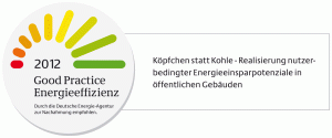 In einem Brief an Bezirksstadträtin Christine Keil überbrachte der Geschäftsführer der Deutschen Energie-Agentur (dena), Stephan Kohler, jetzt eine ermutigende Nachricht: „Köpfchen statt Kohle“ ist als Projekt Nr. 934 mit dem Label „Good Practice Energieeffizienz“ (siehe Grafik) ausgezeichnet worden. Damit ist das Energiesparprogramm des Bezirks Pankow ein Vorbild für andere Städte und Gemeinden in Deutschland.