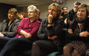 Gekommen sind Schüler, Eltern und Lehrer, aber auch die Auftraggeber – die beiden Bezirksstadträtinnen für Schule und Hochbau, Lioba Zürn-Kasztantowicz und Christine Keil, sowie die leitende Schulrätin Ilse Rudnick. (Auf dem Foto rechts v.l.n.r.: Schulleiterin Janett Hartig, Lioba Zürn-Kasztantowicz, Ilse Rudnick, Christine Keil.) Christine Keil outet sich in ihrem kurzen Grußwort als „Pankows höchste Energiemanagerin“ und freut sich über den Nachwuchs. „Alle Nutzer in den öffentlichen Gebäuden müssen Energie sparen. Das ist nicht nur gut für die Umwelt, sondern spart außerdem Geld“, appelliert sie. Die Schüler stellen in ihren Beiträgen rund um den Film allerdings nicht die finanzielle Seite in den Vordergrund, ihnen geht es ums Klima und die ökologische Zukunft.