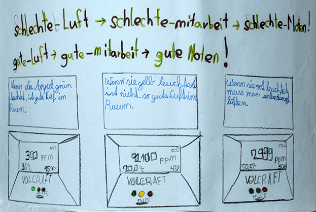 Offen ist auch die Frage, ob eine CO2-Anzeige permanent im Klassenraum verfügbar sein sollte. „Köpfchen statt Kohle“-Projektleiter Richard Häusler berichtet, dass an anderen beteiligten Schulen die dauerhafte Anschaffung von Messdisplays mit Luftqualitäts-Ampel für alle Klassenräume derzeit erwogen wird.