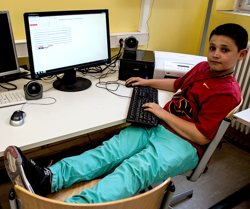 Der Fünftklässler Silvan Aras drückt die Coolness und Kompetenz der jungen Energiemanager bei „Köpfchen statt Kohle“ aus