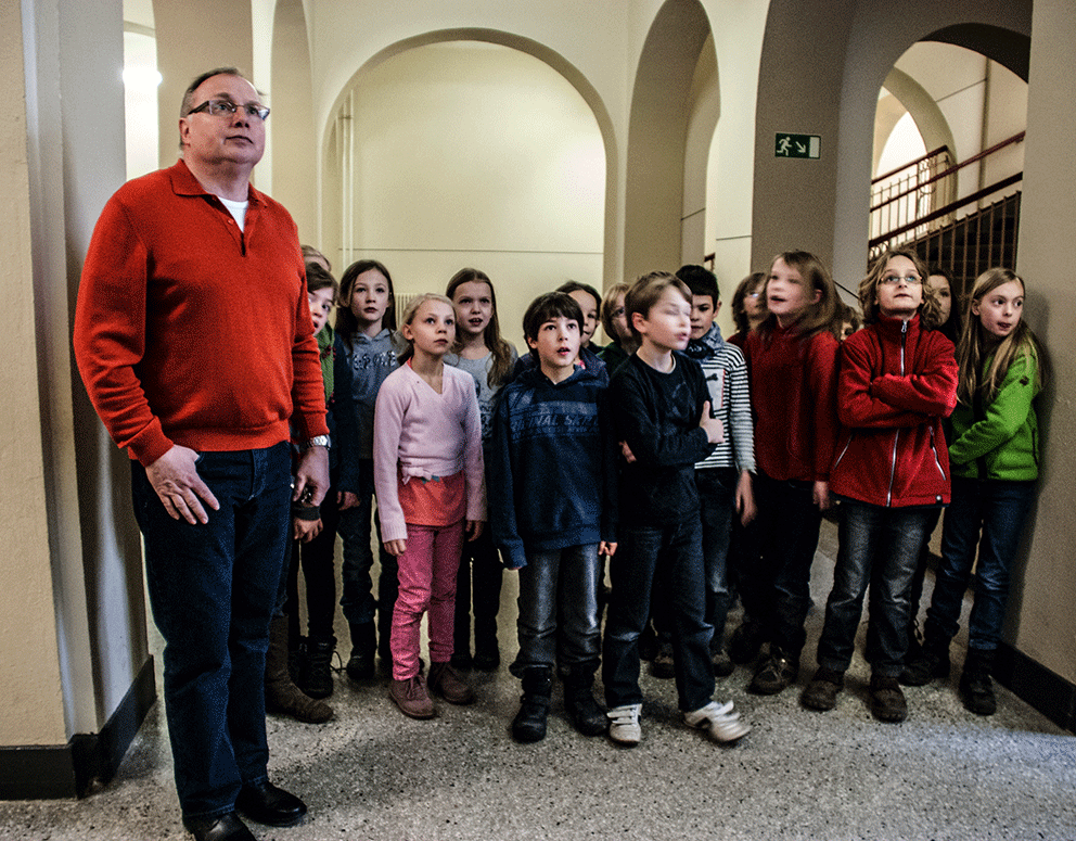 Zur Bilanzkonferenz von „Köpfchen statt Kohle“ am 15. April in der Falkplatzschule stießen zwei Welten aufeinander. Hier die erwachsenen Verantwortungsträger – Politiker, Verwaltungsleute, Experten und Schulleiter, dort Fünft- und Sechstklässler aus drei Grundschulen, die bei „Köpfchen statt Kohle“ mitmachen. Was den Schülerinnen und Schüler rhetorisch noch gefehlt haben mag, glichen sie jedoch leicht durch Engagement und Authentizität aus. Als drei Jungs aus der Grundschule am Kollwitzplatz berichteten, dass sie jede Woche dienstags schon um 7 Uhr in der Schule sind, um ihr Energiesparprojekt voranzubringen, ernteten sie verblüfften Applaus. Was mag die jungen Menschen nur motivieren?
