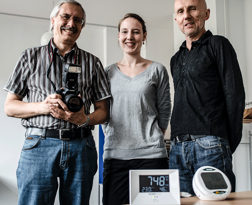 Und schließlich hat sich auch die Agentur, die „Köpfchen statt Kohle“ im Auftrag des Bezirks Pankow entwickelt und in die Schulen bringt – das Büro stratum mit Sitz in Friedrichshain – personell verstärkt, um den 17 teilnehmenden Schulen optimal gerecht zu werden. Mit Hanna Burckhardt ist eine frühere Praktikantin, die „Köpfchen statt Kohle“ bereits kennengelernt hat, jetzt fest angestellt worden. Beim Besuch des „Berliner Woche“-Journalisten Bernd Wähner war sie bereits dabei, um über den Einsatz von CO2-Messgeräten in „Köpfchen statt Kohle“-Projekten zu berichten. Auf dem Foto wird Hanna Burckhardt von Bernd Wähner (li.) und stratum-Geschäftsführer Richard Häusler eingerahmt. Der Artikel in der „Berliner Woche“ ist unter dem Titel „Mit Köpfchen Energie sparen“ bereits erschienen.