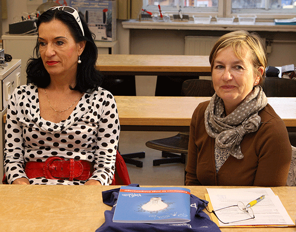 Christine Keil nahm zusammen mit der im Schulamt für die Reparaturmeldungen zuständigen Mitarbeiterin, Iris Ellmer, gerne auf der Schulbank in Raum 006 der größten Pankower Grundschule Platz, um sich zu informieren (Foto). Aus Verwaltungssicht konnte sie zwar nur darauf hinweisen, dass der Hausmeister für Reparaturmeldungen zuständig ist. Aber dass die Energiemanager Iris Ellmer als zuständige Ansprechpartnerin jetzt persönlich kennen, ist sicher von Vorteil. „Dann kann man im Einzelfall auch mal darüber reden, wenn es irgendwo hakt“, schlug die Schulamtsmitarbeiterin vor.