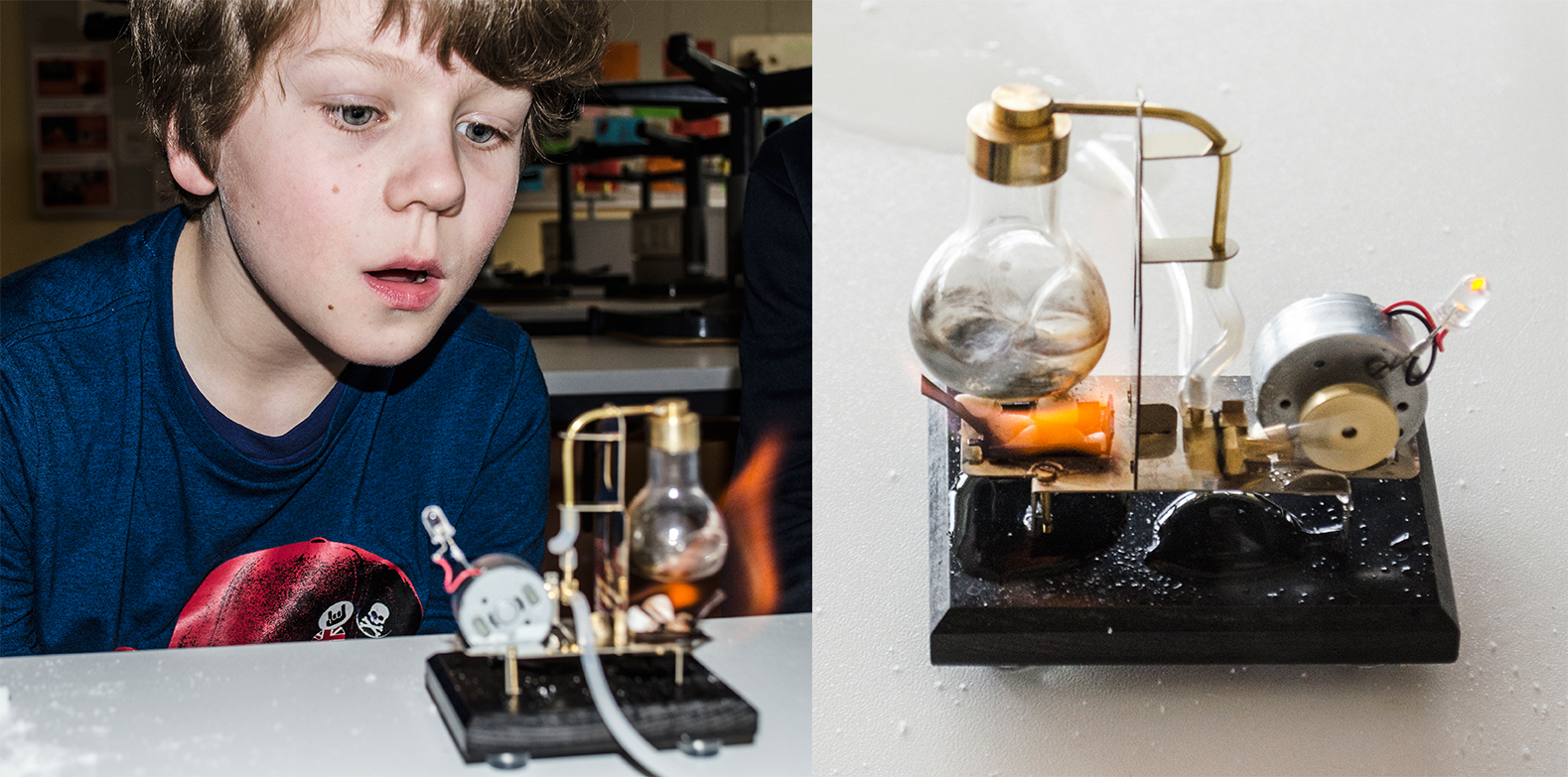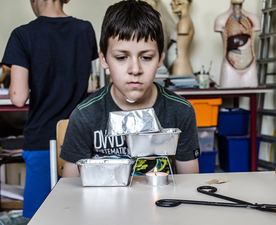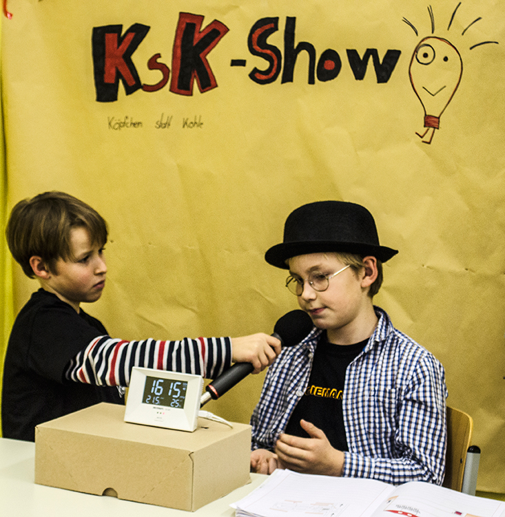 Da die Projektarbeit von „Köpfchen statt Kohle“ keinem festen Curriculum folgt, sondern offen ist für die Fragen und Interessen der Schülerinnen und Schüler, tauchen auch immer wieder mal Themen auf, aus denen die Projektbetreuer kleine Preisrätsel machen. So wurden die Energiemanager der Grundschule unter den Bäumen aufgefordert, doch selbst herauszufinden, wie ein Kühlschrank funktioniert. Wie kommt die Kälte in den Schrank? Die Schülerinnen und Schüler nutzten die Weihnachtsferien und kamen zum ersten Treffen im neuen Jahr mit einer Menge Antworten zurück, die verschiedene Aspekte der Frage betrafen. Was ist ein Kältemittel? Wie ist das mit der Verdunstungskälte? Was macht der Kompressor am Kühlschrank? Die beiden Teams, die solche Fragen am besten beantworteten, bekamen kleine Preise.