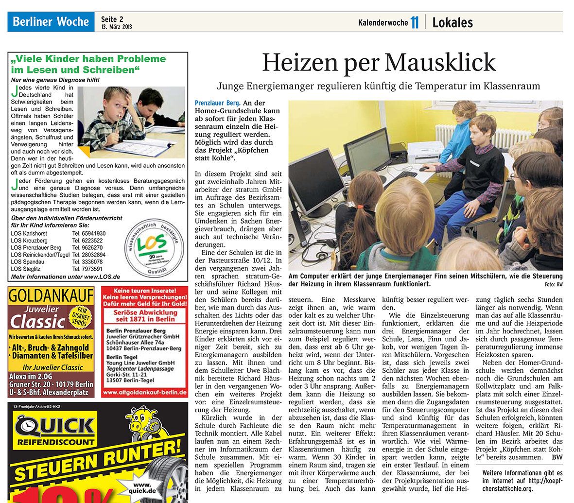 - Artikel in der „Berliner Woche“ vom 13.03.2013: „Heizen per Mausklick. Junge Energiemanager regulieren künftig die Temperatur im Klassenraum“